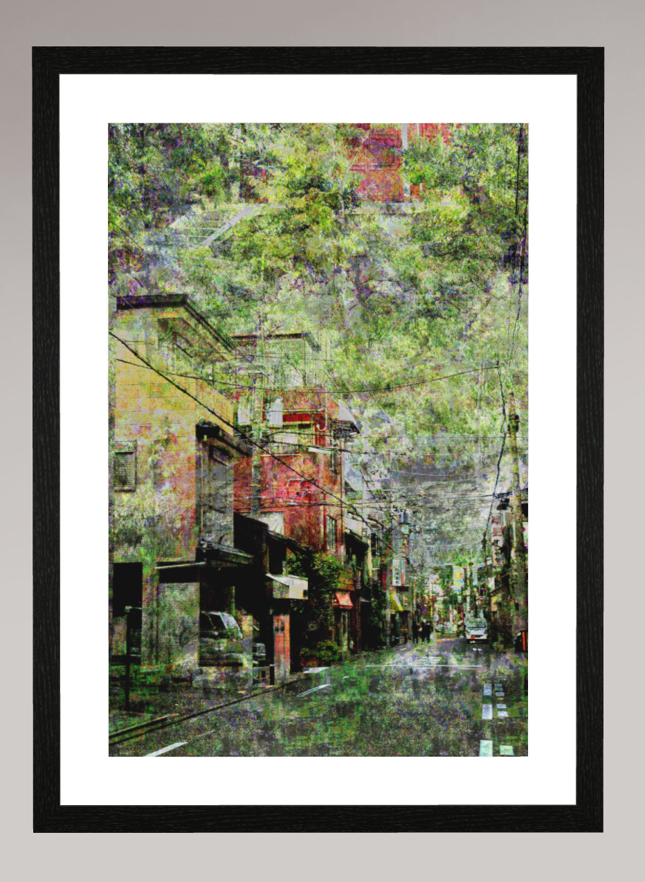 Just off a suburban roadside, I stumbled upon a wide and peaceful park, lovingly maintained by local residents. It served as a place of rest, community, and subtle retreat within the pulse of the city. These hidden green sanctuaries are scattered throughout Japan, and encountering this one by accident left a lasting impression—one that became the foundation for this piece.